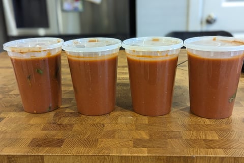Let cool to room temperature, aliquot into plastic quarts (4), and store in the freezer.
